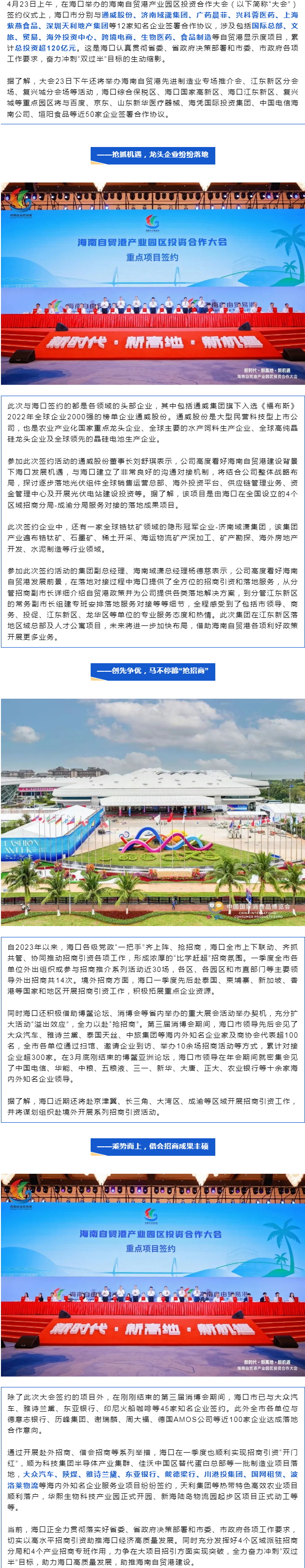 奮力沖刺“雙過半”!12個項目簽約落戶海口,總投資超120億。